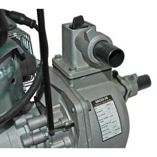 Selbstansaugende, benzinbetriebene Pumpe mit robustem, luftgekühltem 4-Takt-Motor. Motorgehäuse aus hochwertigem Alu-Guß. Leichtstart mittels Seilzug. Stabiler Metallrahmen mit Schwingungsdämpfer, für sicheren Stand und einfachen Transport.