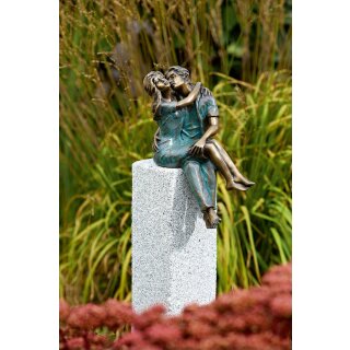 Gartendeko: Bronzefigur "Pärchen Junges Glück auf Granit-Stele, gestockt 98 cm hoch"