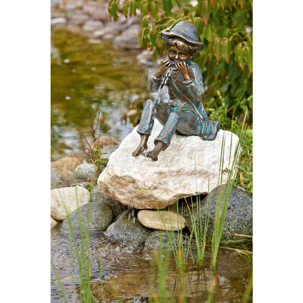 - Bronze hat, je nach Mischungsverhälnis von Kupfer und Zinn, eine bräunlich schimmernde Farbe. Mittels Laugen wird die Entstehung der Grünspan-Patina an der Oberfläche beschleunigt. Danach erhält der Bronze-Kunstguss durch schleifen und Bürsten per Hand sein entgültiges Erscheinungsbild.