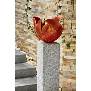 Feuerschale Flamme, rot patiniert auf Granit