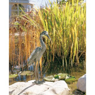 Gartendeko: Bronzefigur Graureiher, 56 cm hoch