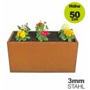 (85103001802_EOL) Pflanz-Container "Dominus" 100x50cm Höhe 50cm, rostiger Stahl verschweißt, sehr stabile Materialstärke 3 mm (!), Bodenlochblech, Versand kostenfrei*