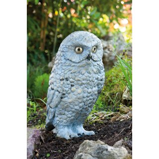 Gartendeko: Bronzefigur Schnee-Eule, weiß, 56 cm hoch