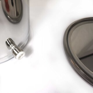 Edelstahl-Fass / Lebensmittel-Fass: Lagern, Mischen und Transportieren verschiedener Flüssigkeiten wie z.b. Weine, Säfte, Liköre, Spirituosen und Sirup. Edelstahlfass oben offen mit Verstärkungsrand und dichtschließendem Spanndeckel.