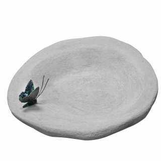 (80080007) Vogeltränke aus Steinguss Natur mit Rottenecker Art.-Nr. 88635 Schmetterling aus Bronze, Flügel geschlossen Hergestellt in Deutschland