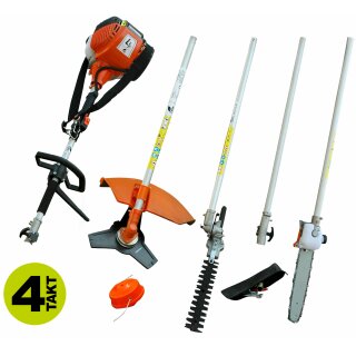 YERD 4-in-1 Multi Motortrimmer: 4-Takt (!)  Benzin- Motorsense, Heckenschere, Ast-Kettensäge und Freischneider / Rasentrimmer in einem / 1,5 PS / universelle 25,4 mm Aufnahme