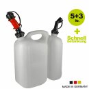(250FO23610+FuelsysBenzin) YERD Sonderposten Schnelltanker: Original Hünersdorff Doppel-Kanister / Kombi-Kanister 5+3 Liter + 1 autom. Füllsystem für Benzin, Made in Germany