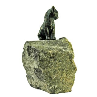 (80089006.4) Gartendeko Figur: Bronzefigur Garten, Junge Katze auf Granit, sitzend, ca. 43 cm hoch, original Rottenecker Objekt